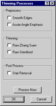 From the Image menu you can select the Thinning - Custom Process option to get the following window: