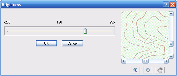 Moving the slider to the right makes all the pixels lighter, and moving the slider to the left makes all the pixels darker. The preview image shows the effect as you drag the slider back and forth. Pressing the OK button will perform the change on your image.