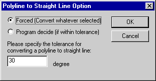 This option can be used to swap each of the selected polylines with a single straight vector. Whether each polyline is swapped with a single vector is dependant on the options set on the Set Poly to Straight Line Option ... window, which you should set prior to clicking the Polyline to Straight Line menu option: